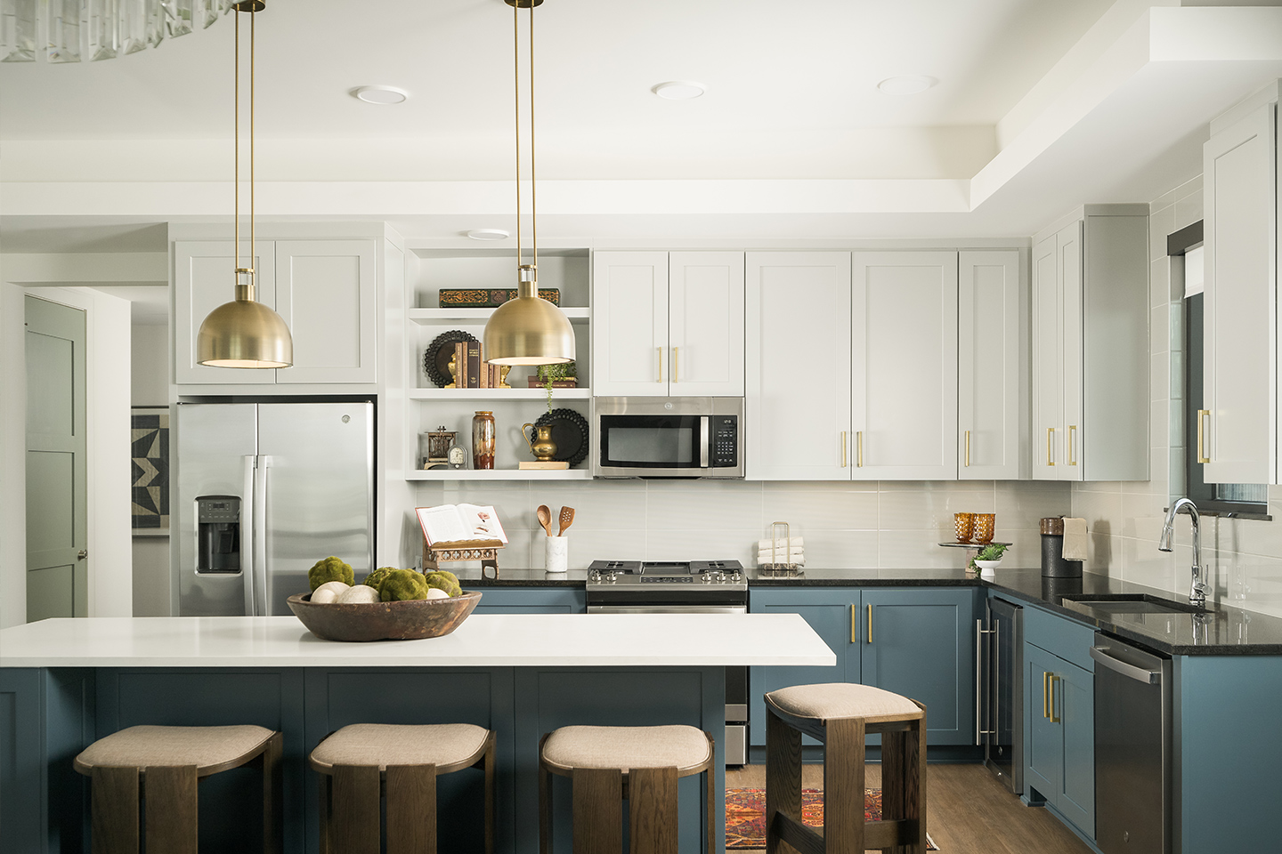 The 34- and 35-story towers feature private, on-site parking; rooftop dog parks; and a shared third-floor amenity deck with a pool, fitness center, arcade, resident bar, co-working spaces, and golf simulator. The sophisticated and spacious residences include custom kitchen cabinetry, top-of-the-line appliances, dine-in islands, spa-grade bathrooms, crafted closets, SONOS activated sound systems, and wine refrigerators.